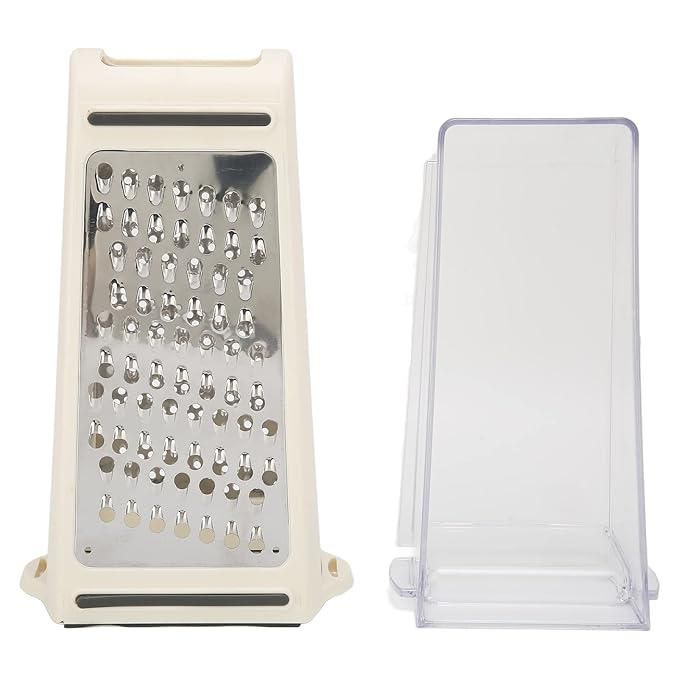Cheese Grater, Double Sided ABS and PS Material Grips Box Grater, Food Grater with a Clear Container for Cheese Vegetables Garlic and Ginger- 1 Pcs ( Assorted Colour)